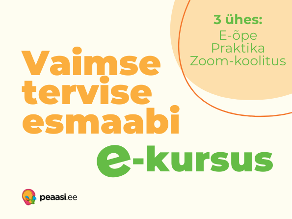- Koolituskohtumine Zoom keskkonnas koos Peaasi.ee vaimse tervise esmaabi koolitaja ning teiste koolituse läbijatega. Kestus 3h ehk 4 ak.t. NB: Kohtumiseks pakutakse erinevaid aegasid ning neid tuleb regulaarselt juurde.