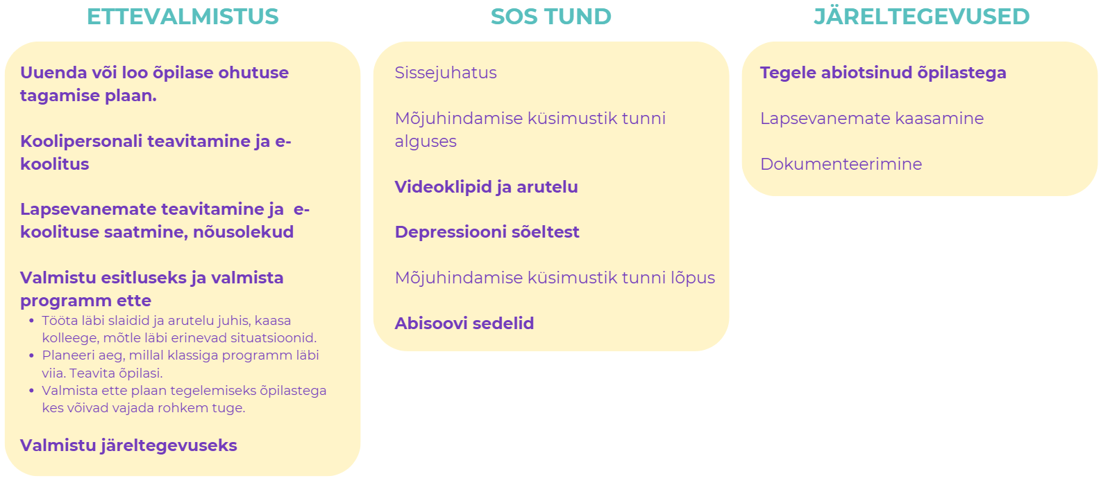 - Tutvustav kiri kooli meeskonnale SOS programmi kohta, lisa siia ka õpilase ohutuse plaan.